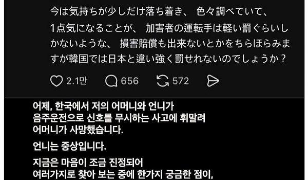 한국에서 음주운전때문에 사망한 일본인 가족이 올린 사연 ㄷㄷ.jpg