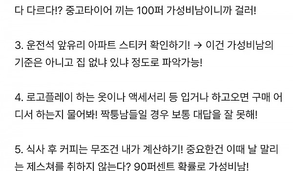 블라에서 말하는 가성비남 거르는 방법