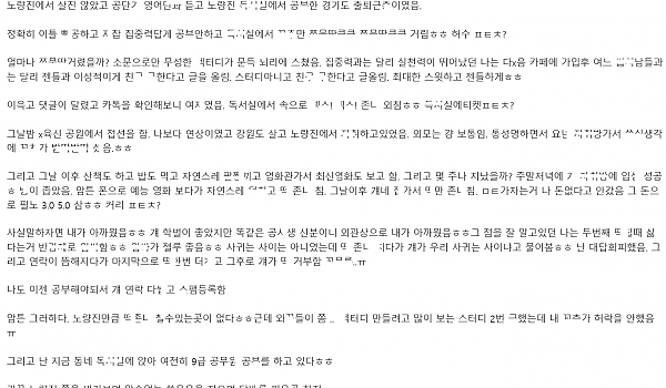 노량진에서 공ㅂ 친ㄱ 구ㅎ서 ㅈㄴ ㅅㅅ터디한 썰