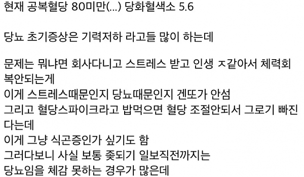 2형 당뇨 환자가 말하는 당뇨 초기증상