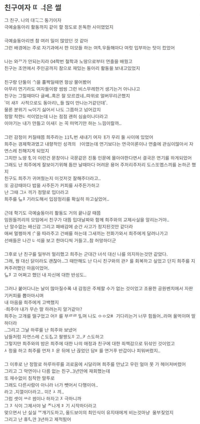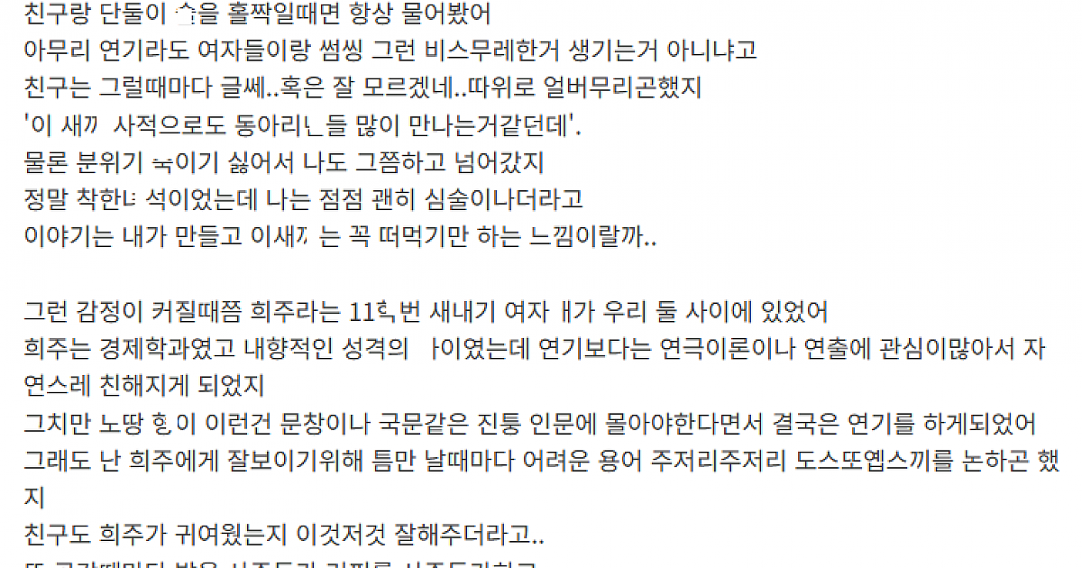예술 동아리 하면서 친구여ㅈ..r 뺏ㅇ서 ㄸㅁ은 이야기