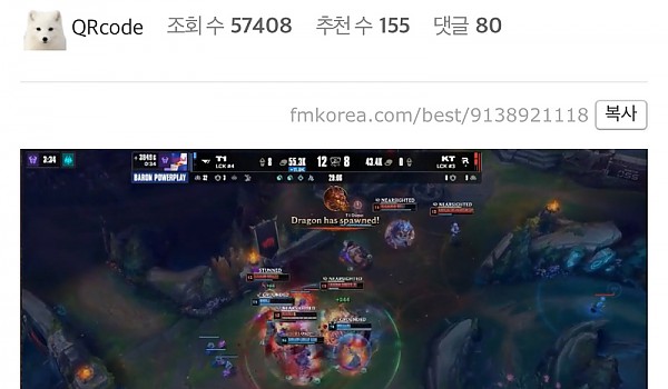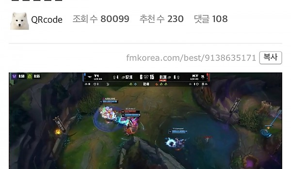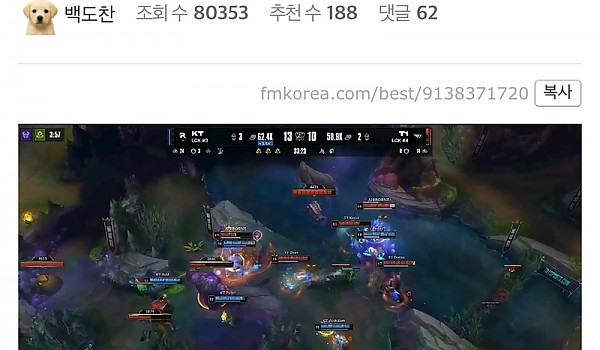 T1 멤버 다섯명이 너무나 잘한 한타 초대박ㄷㄷ(+영상)