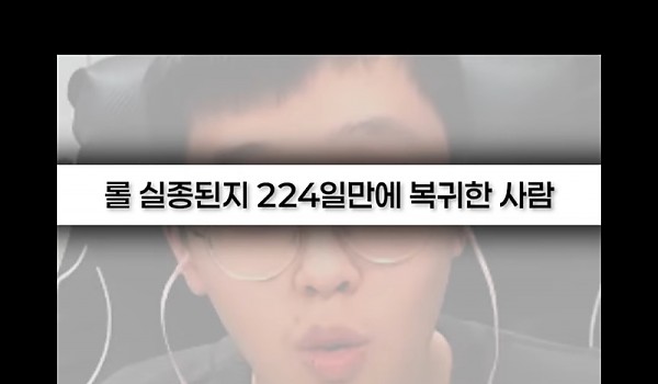 실종된지 224일 만에 복귀했다는 롤 유튜버