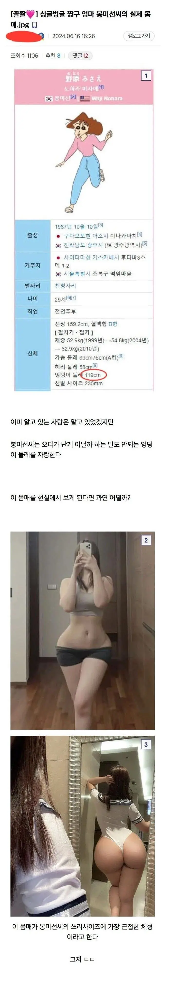 짱구 엄마 봉미선 몸매 실사화 했을 때 결과