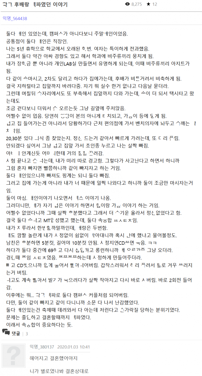 서로 ㅇh인 있는 상태서 ㅅㅅ했던 ㅉ릿한 ㅎ교 후배와의 ㅅ궁합