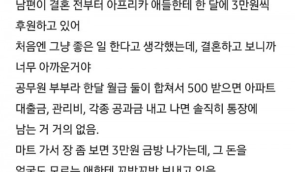 남편이 아프리카애들한테 3만원 후원하는 거 너무 아까워