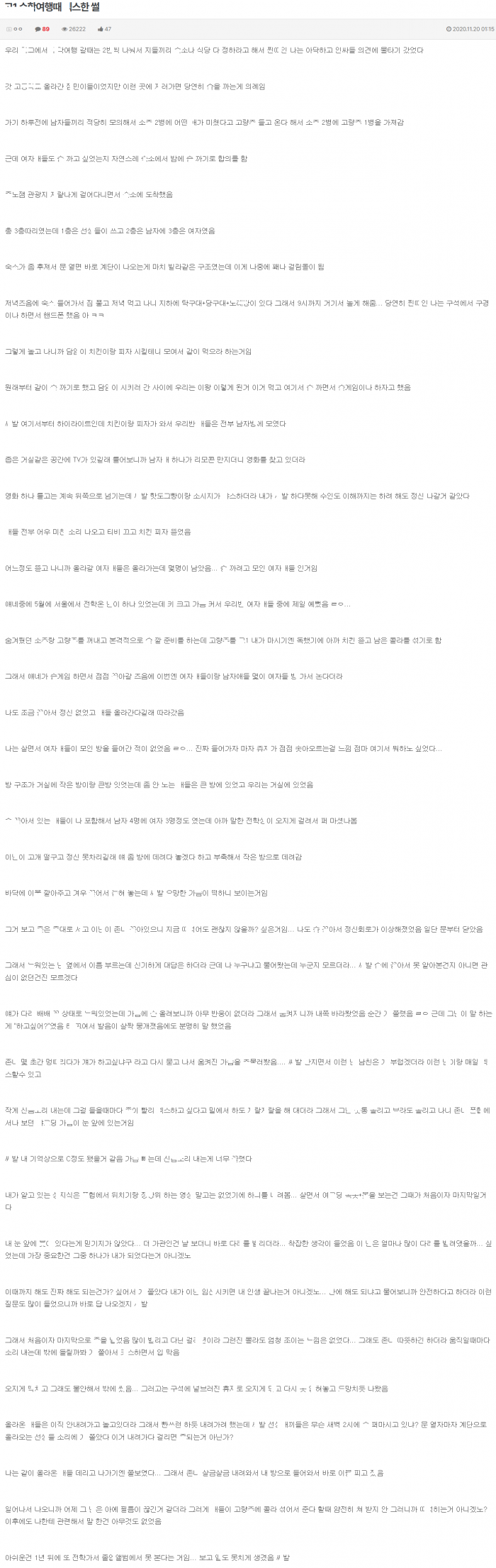 수ㅎ여행 가서 ㅅ마시고 여ㅈㅇ랑 몰래 ㅇ스 한 추억