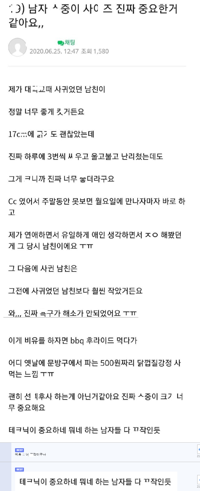 남자 ㄲㅊ 사ㅇ즈는 진짜 중요한거 같아요