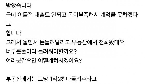 아파트 계약금 돌려준다 vs 안돌려준다
