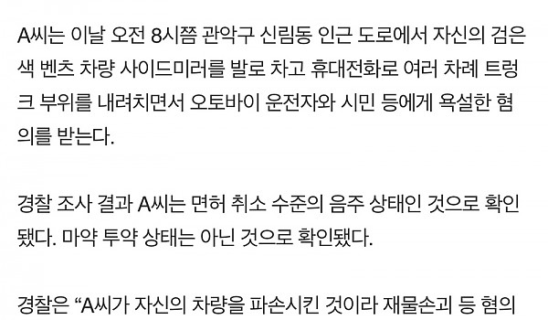 본인 차 부수는 신림동 벤츠녀