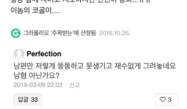 남편만 못나게 그리냐는 댓글에 달린 답변ㄷㄷ