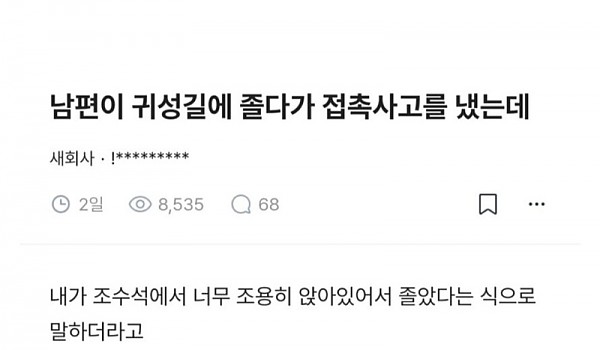 남편이 운전하다가 접촉사고를 내서 싸웠다는 여자ㄷㄷ(+댓글포함)