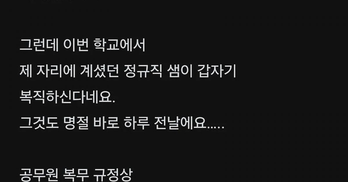 정규직 교사 얌체 복직 때문에 힘들다는 기간제 교사