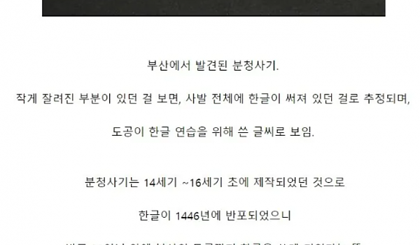 한글이 새겨있는 14세기의 분청사기