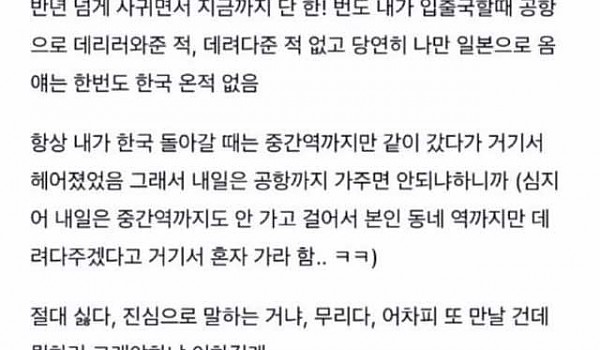 일본남친한테 공항까지 바래달랬다가 차인 여자.jpg