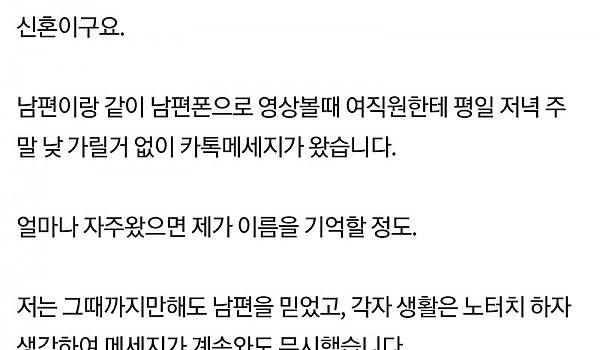 남편분들 주말에도 이성직원과 카톡하시나요