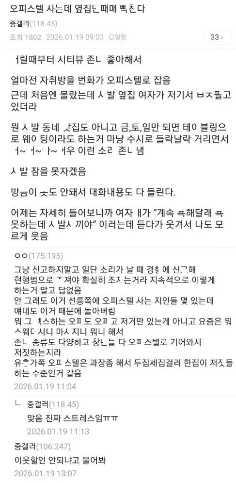 옆집 여자가 ㅂㅈ팔ㅇ 업ㅅ녀라서 화난다는 디시인