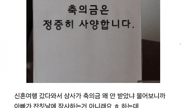 축의금 안 받는 결혼한 사람 때문에 살벌해진 회사
