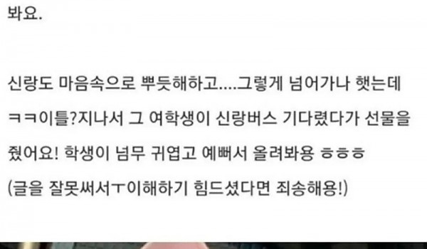 여학생에게 선물 받아온 남편 ㄷㄷ