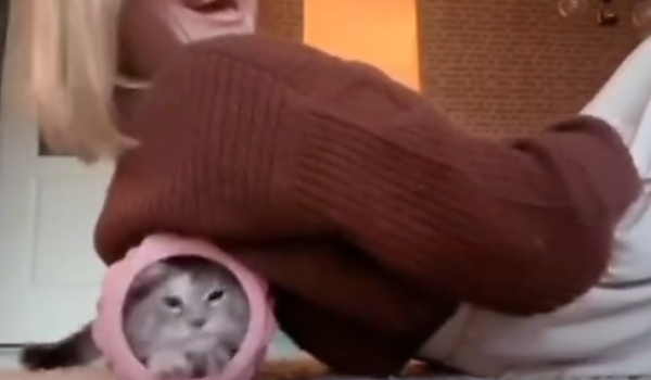 폼롤러에 들어간 고양이 한마리