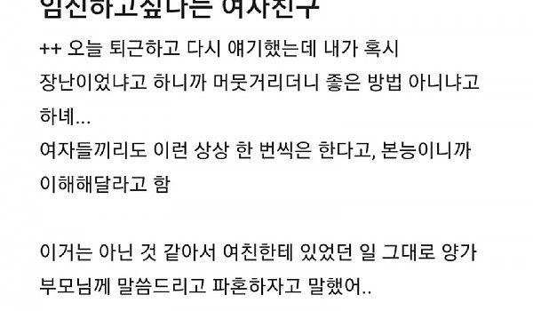 결혼하고 다른 남자의 정자로 임신하고 싶다는 여자친구(+후기포함)