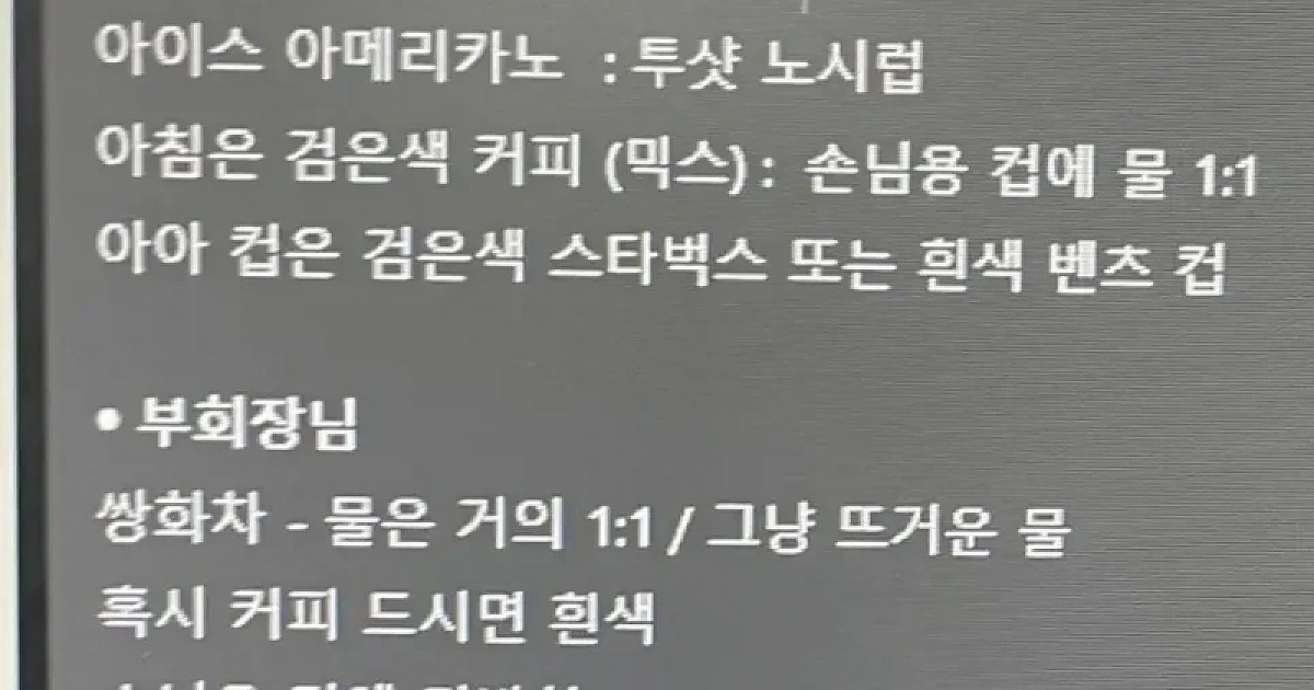 입사 첫날 인수인계 받은 커피레시피