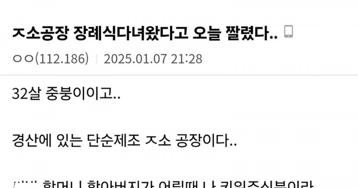 장례식 다녀왔다고 오늘 ㅈ소 공장 짤렸다..