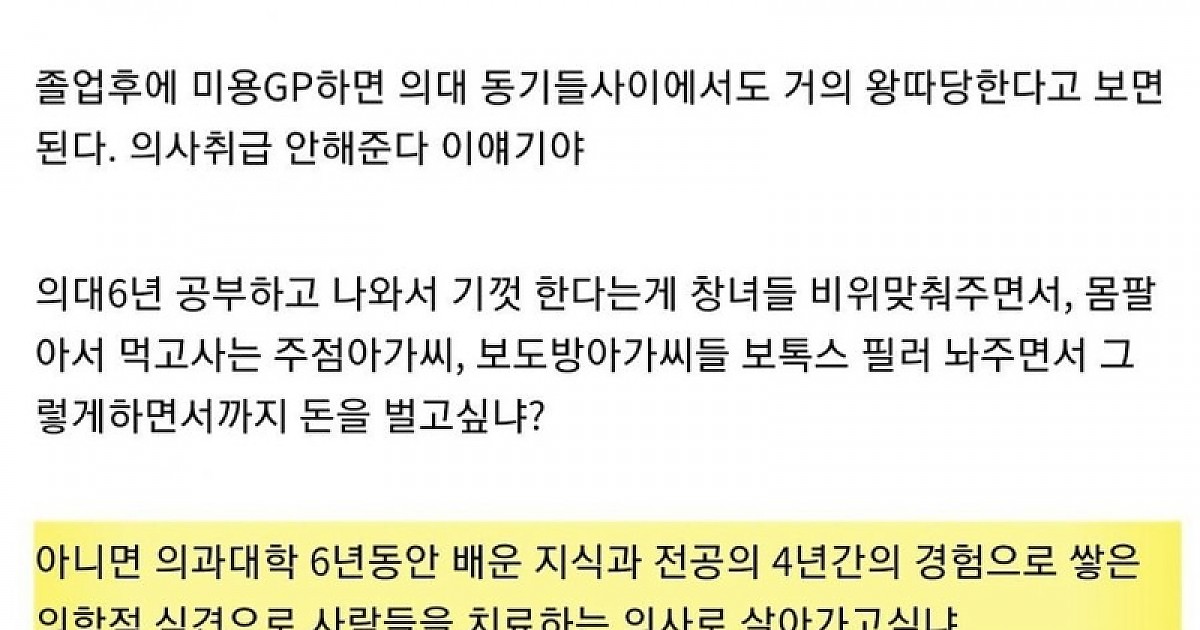 의사로서 의대생에게 충고한다 미용GP하지마라