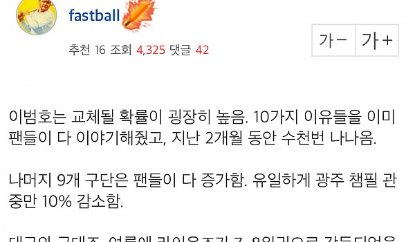엠팍아재가 이범호가 다음 시즌에 기아감독직에서 경질될거라고 생각하는 이유