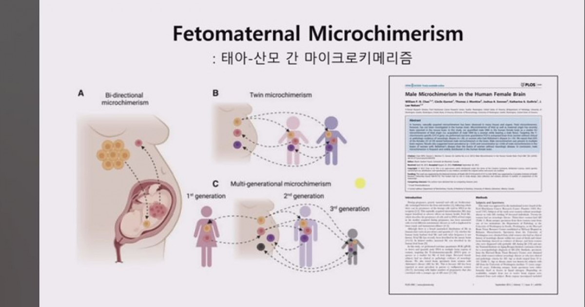 Y 염색체는 여성이라면 갖고 있지 않아야 정상인데 태아한테서 나온 Y 염색체가 태반과 혈류의 장벽을 다 뚫고 몸에 자리 잡음..