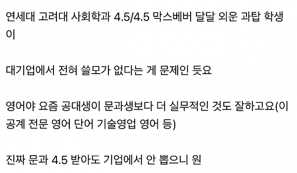 요즘 문과 과탑해도 취업 어려운 이유