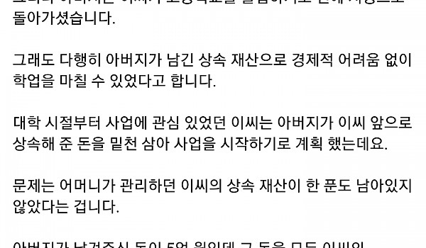 돌아가신 아버지가 상속해준 재산을 엄마가 다 썼어요