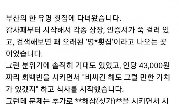 이게 7만원 어치 해삼?... 자갈치시장 바가지 논란