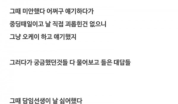 우연히 만난 동창에게 들은 내가 왕따 당했던 이유