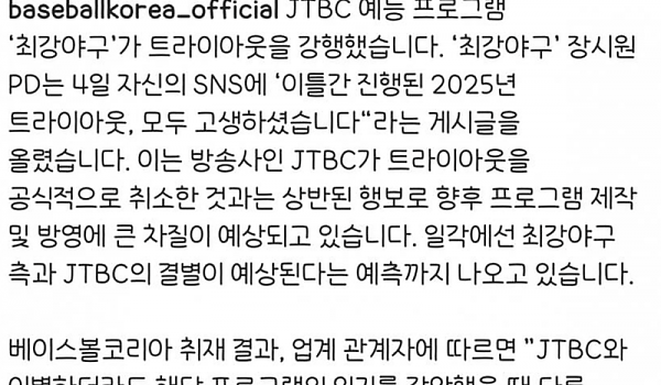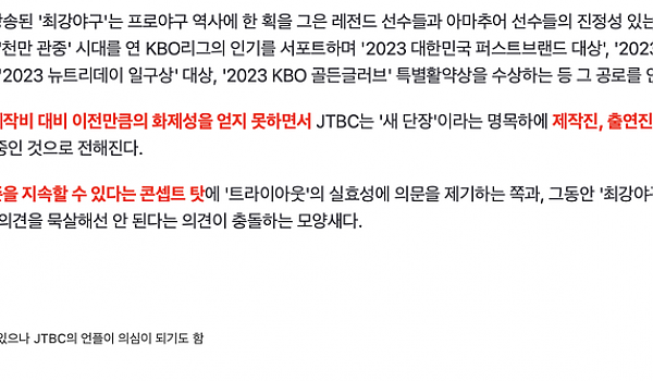 베이스볼코리아 피셜 최강야구 jtbc 말고 다른 플랫폼 가능성있다