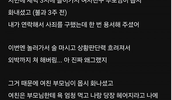 통금있는 30대 여친이랑 외박했다가 여친 부모님이 화 냄.blind