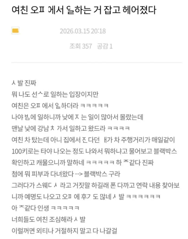 여친이 ㅇㅍ녀라는걸 알게된 호ㅃ선ㅅ