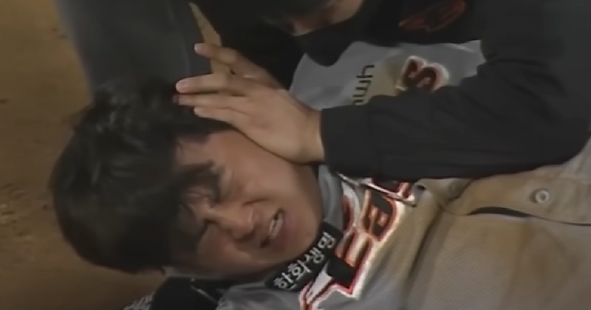 도루 견제구에 맞아 얼굴에 새겨진 야구공 실밥 자국