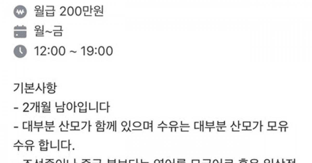 2. 애기 돌보면서 청소 빨래 등 기본 가사도 같이 해야함.