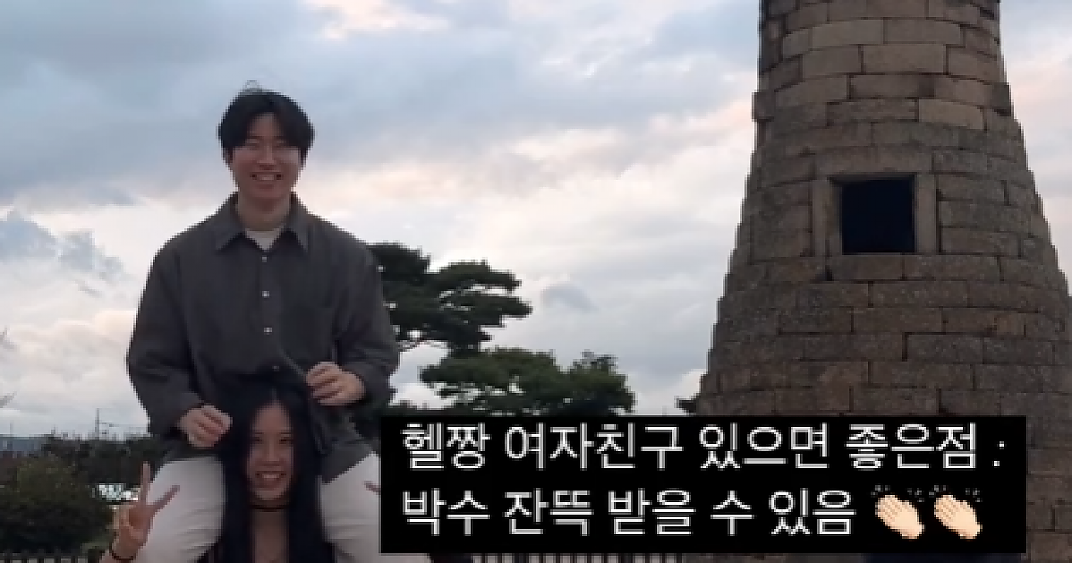 첨성대에서 남친 목마태우고 사진찍은 헬짱 여친 ㅋㅋ
