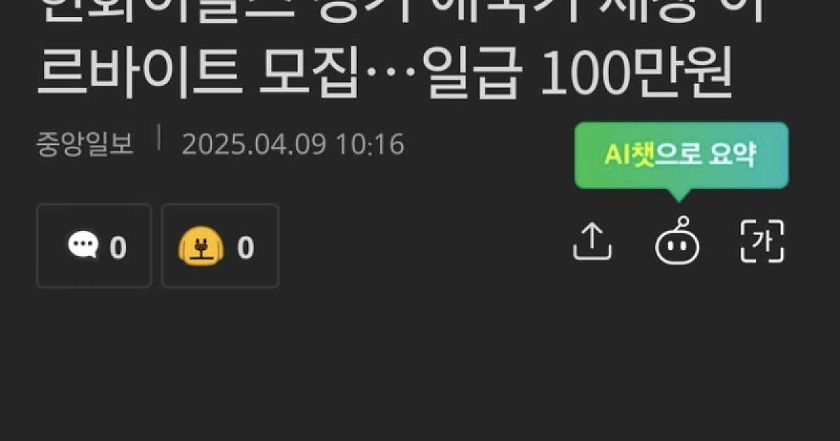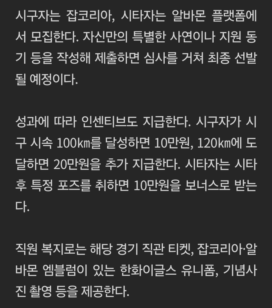 한화이글스 일급 100만 원짜리 꿀 알바