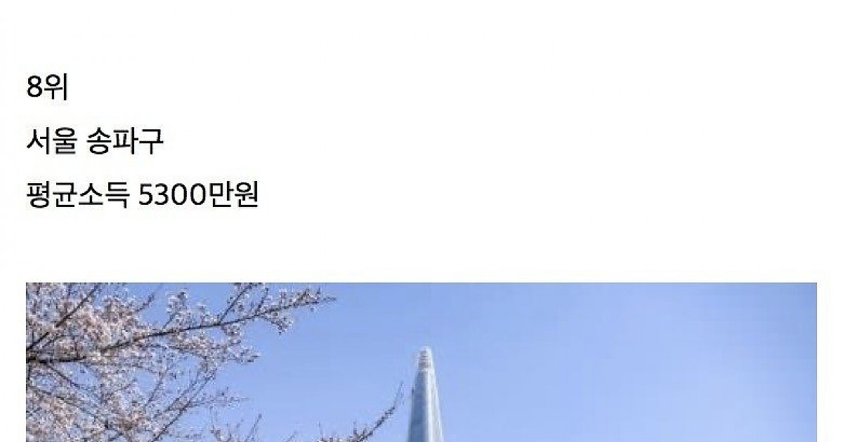 평균소득 높은 동네 Top10