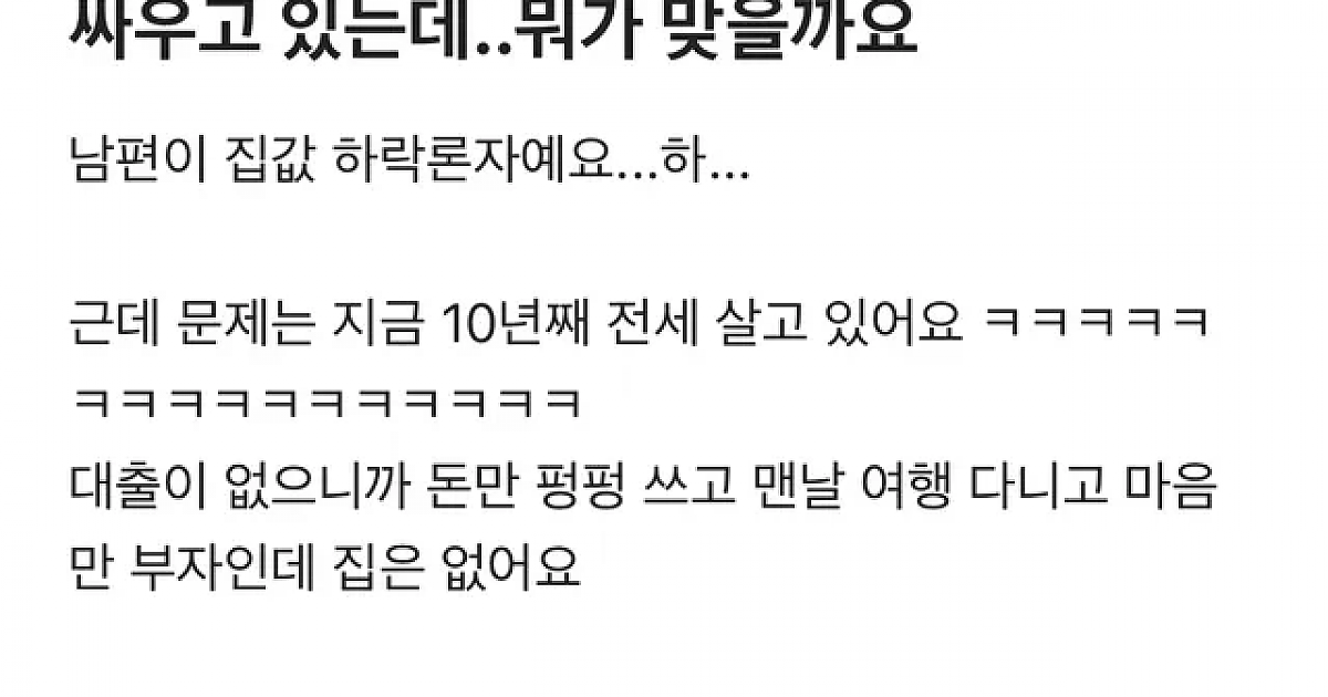 남편이 집값 하락론자이면 생기는 일
