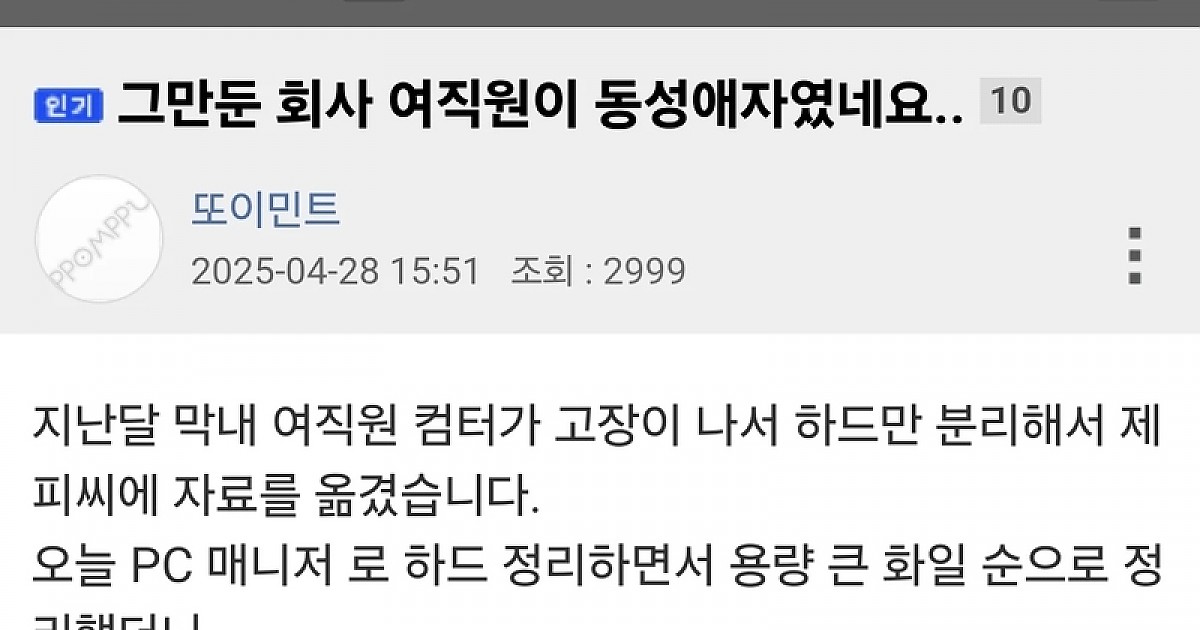 그만둔 회사 여직원이 동성애자였네요..