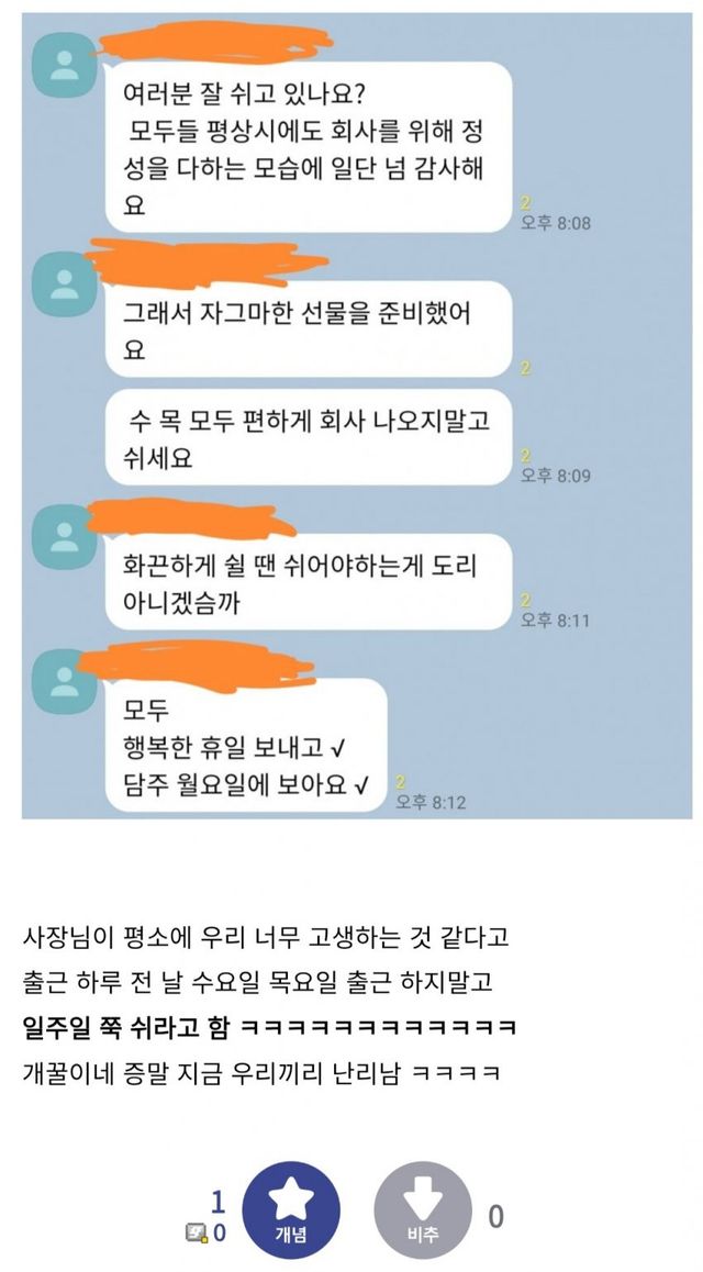 출구조사 결과 난리난 어느 회사 단톡방