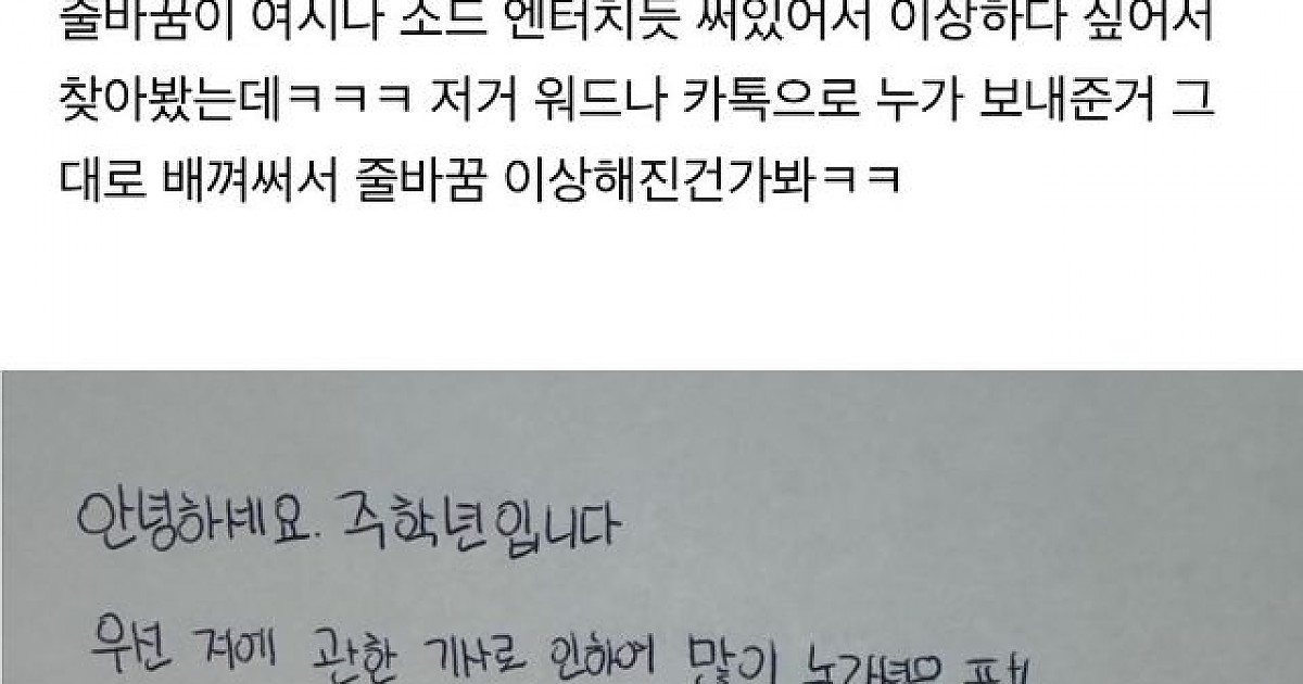 ㅈ학년 사과문 중 줄바꿈에 대한 의문이 풀리는 듯한 글