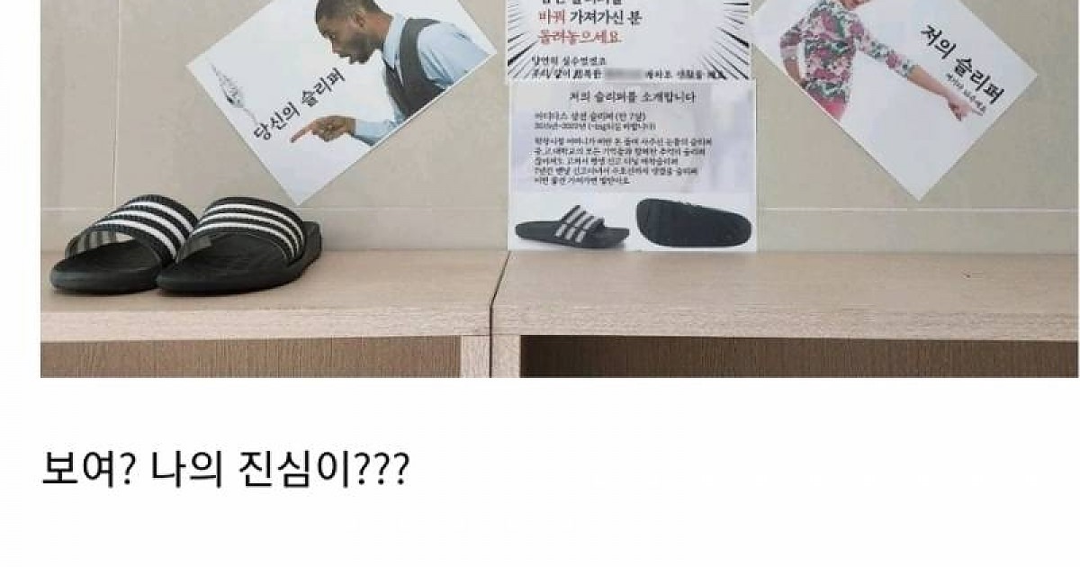 나...아파트 헬스장에서 슬리퍼 잃어버렸는데 드디어 돌려받았어