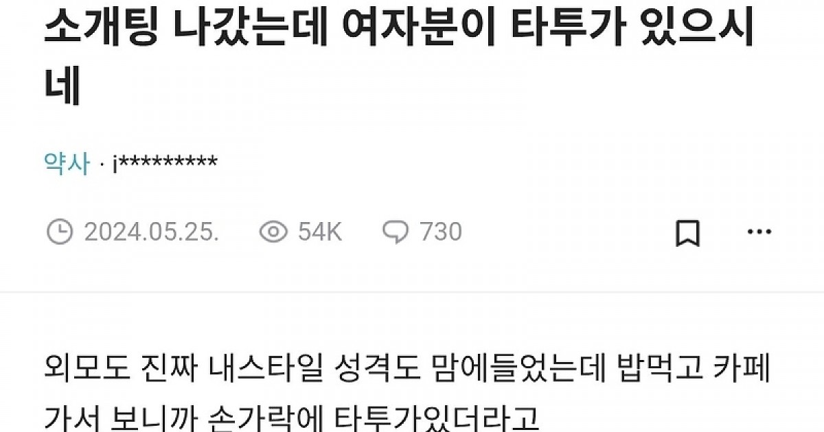 소개팅 나갔는데 여자분이 타투가 있으시네