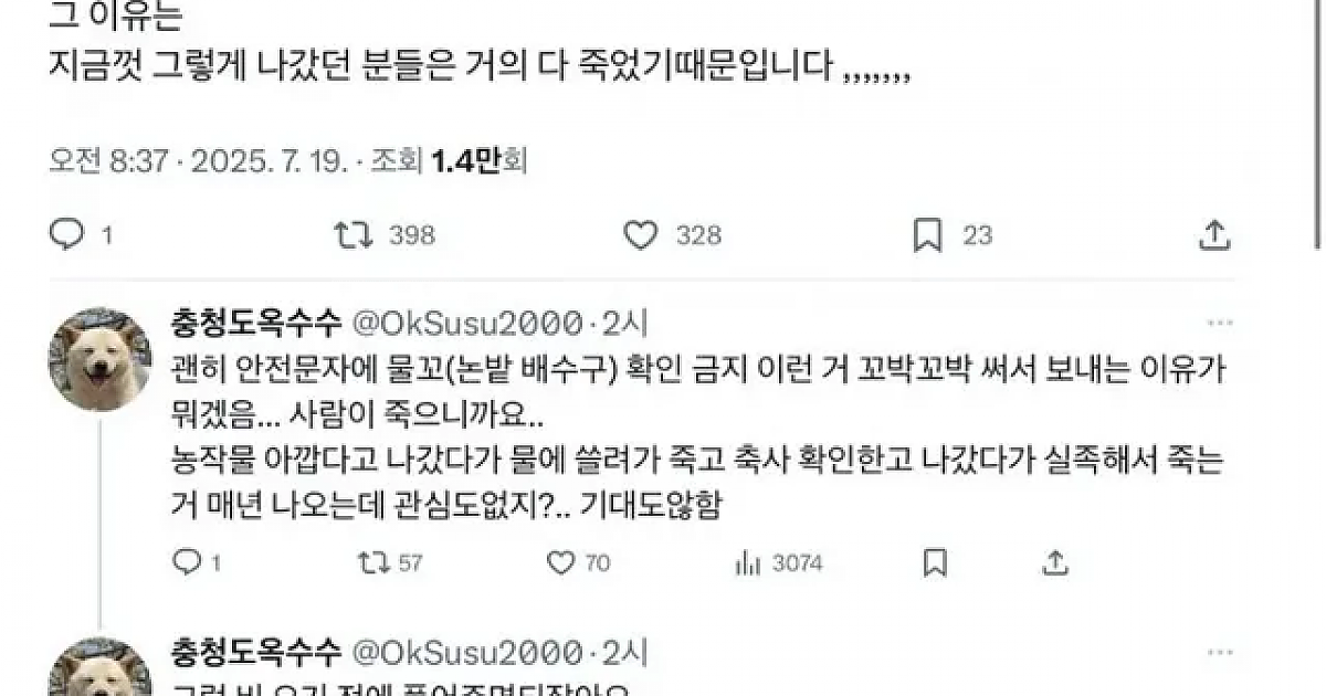 시골 지역에 재난 상황 왔을 때마다 듣는 소리