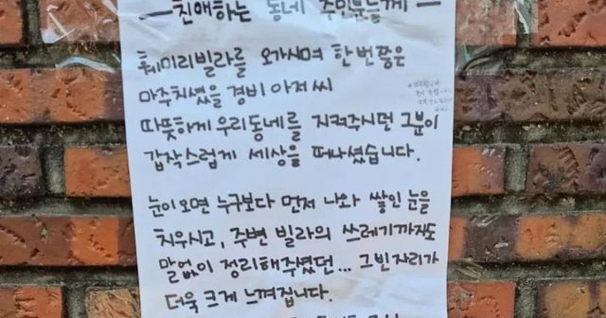 훌쩍훌쩍 감사한 이웃이 떠난 자리